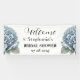 Modernes, elegantes, hydrangea blaues Blumenwasser-Brautparty Willkommen Banner. Banner mit rustikalen, blauen und violetten Blumen. Ideal für Brautparty. Man kann es mit dem Namen und dem Datum der Braut personalisieren.