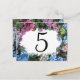 Passen Sie diese hübschen Hydrangea Blume Frame Tischnummern an und erstellen Sie für jeden Tisch eine andere Karte für Ihren Garten Thema Heirat Empfang, Brautparty oder Engagement Party. Diese eleganten, individuell gestalteten Blumenkarten verfügen über ein digital nahes Blumenfoto von blauen, rosa und weißen Hydrangea-Blume mit grünen Blätter.