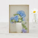 Lila und blaue Hydrangea-Blume mit Königin Anne's Lace in einer Vase mit texturiertem Overlay.