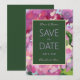 Ein impressionistisches Blumengemälde schafft einen rosa und lila Hintergrund für diese Save the Date Karte.