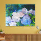 Lustige Aquarellfarben-Blume blühen in einem schattigen Garten an einem schönen Sommertag. Die Aquarellkunst zeigt Hydrangea-Blüten in Rosa und Blau mit grünen Blätter. Design stammt aus einem originalen Aquarellbild von Mary Hamilton mit dem Titel "Deep Shade in the Garden".