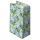 Diese kleine Papiergeschenktüte wird in einem schönen blauen Hydrangea-Blumendruck gezeigt. Passen Sie diese Geschenktasche an oder kaufen Sie, wie es ist. Lizenzierte Printwerbung