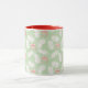 Rot gehandhabte weiße Hydrangea-Blume mit roten Bögen und grünen Streifen Tasse. Perfektes Geschenk für den Großtausendjährigen Liebhaber!