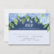 Diese RSVP-Hochzeitskarte mit Aquarellblau-Hydrangea-Blume und Blätter aus grünem Blattwerk auf marineblau mit Korallenkegel-Leuchten. Das Restaurant bietet auch verschiedene Gerichte an. Weitere passende Hochzeitsartikel stehen ebenfalls zur Verfügung.