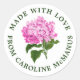 Der klassische Serifentext umkreist eine antike Abbildung einer traditionellen, rosa Hydrangea-Blüte auf diesem hübschen, großen Jahrtausend-Stil, Geschenkaufkleber-Etikett. Personalisieren Sie den Text, um einen Firmennamen oder persönliche Informationen über Ihre handgefertigten Produkte zu teilen oder als elegante Art, Geschenke zu geben, die mit Liebe an Ihre Freunde und Familie gemacht werden.