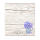 Dieses Hydrangea Pitcher Notepad verfügt über eine Hydrangea-Blüte in einem blauen Glaskasten mit einem alten weiß gewaschenen Holzhintergrund.