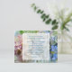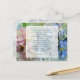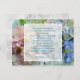 Hydrangea Hochzeit speichern Sie das Datum Postkarte mit der Schrift. Hübsches, blumengeschmücktes Design mit rosa, grünen und blauen Hydrangea-Blume an der Vorderseite mit Vers von 1. Korinther. Liebe ist geduldig, Liebe ist freundlich, in blau, Skript in einem weißen Panel mit Wirbel an den Ecken. Erschwingliche und hübsche Hochzeitsankündigungen.