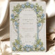 Diese schöne Hochzeitseinladung besticht durch ein zeitloses Jugendstil-Design, das mit eleganten, blauen Hydrangeas und üppigem Grün geschmückt ist. Die Vorderseite der Karte zeigt komplexe Blumenmuster, die mit anmutigen Blättern in sanften Pastelltönen in Blau, Grün und Creme verwoben sind. Das detaillierte Design schafft eine ruhige und romantische Atmosphäre, perfekt für eine anspruchsvolle Hochzeitsfeier. Die Rückseite der Einladung setzt das Blumenthema fort und hebt den Hochzeitstag mit einer raffinierten Anordnung von Hydrangeas und Blätter hervor. Ideal für Paare, die eine Mischung aus traditioneller Eleganz und künstlerischem Charme suchen, verkörpert diese Einladung das Wesen von Romantik und Natur.