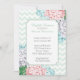 Hübsche Brautdusche mit trendigen Hydrangeas und Zickzack Muster. Die Grafik der Zickzack, hellgrün und weiß geprägten Motive schmückt den Hintergrund der Einladung, mit pastellfarbenen Hydrangeas, in den oberen rechten und unteren links Ecken. Ein weißer Textbereich mit grüner Nocke in der Mitte ist mit benutzerdefiniertem Text versehen, der personalisiert werden kann.