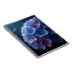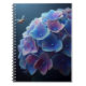 Eine pulsierende lila und blaue Hydrangea mit Biene zeichnet sich vor einem dunklen Hintergrund durch atemberaubende Details aus.