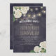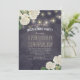 Vorlagen der Einladungspartei - Elegante weiße Hydrangea-Blume und Streichleuchten auf Vintagem Navy Blue Floral Linen Hintergrund. Ein perfektes Design für Ihren großen Tag. Alle Textstile, Farben, Größen können an Ihre Bedürfnisse angepasst werden!