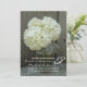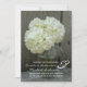 Eine Hochzeitseinladung mit einem Foto vor einem Glas Hydrangeas über eine Kulisse von Barnwood. Personalisieren Sie den Text auf der Vorder- und Rückseite mit Details zu Ihrem Anlass. Die Aufnahmen stammen aus Braut und Bräutigam zusammen mit ihren Eltern.