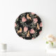 Hyena & Protea: Schwarzer Hintergrund Nahtlos Große Wanduhr