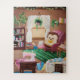 Ein gemütlicher Igel erinnert sich in einem gemütlichen Stuhl mit einem Buch in dieser Acryldarstellung von Lydia Holloway.