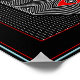 Diese abstrakte und geometrische Illustration zeichnet sich durch ein zentrales Design von vier stilisierten, gestapelten Augen in unterschiedlichen Staaten der Offenheit aus, die in fett rot und schwarz mit weißen Konturen dargestellt werden. Die Augen sind in einer ovalen Form verkleidet, die aus konzentrisch weißen Linien besteht, die eine optische Täuschung erzeugen. Dieses Hauptmotiv ist Set vor einem texturierten schwarzen Hintergrund, der mit winzigen weißen Punkten gefüllt ist. Eine Reihe von Rändern umrahmen das Bild: eine dünne rote Linie, eine dünne blaue Linie und eine breitere schwarze Außengrenze, alle schaffen ein Gefühl der Tiefe und konzentrieren sich auf das zentrale, fast psychedelische Design.
