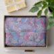 Dieses Papiertaschentuch ist eine visuelle Freude, eine Leinwand lebendiger Farben und komplizierter Muster. Das Design ist eine Sinfonie mit reichhaltigen Lila, Blues und Pinks, die in einem eleganten Tanz zusammenwirbeln. Das Muster ist komplex, mit Linien, die Blume-ähnliche Formen und abstrakte Formen erzeugen, sodass jeder Blick eine neue Entdeckung macht. Strategisch platzierte weiße Punkte erhöhen Kontrast und Tiefe und erhöhen so die visuelle Attraktivität. Das Design ist harmonisch und dennoch dynamisch und zeichne das Auge, ohne es zu überwältigen.
