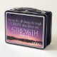 Stylish Christian Monogram I CAN DO ALL THINGS Bible Verse Metal Lunch Box, with CUSTOMIZABLE MONOGRAM. The inspirational quote is based on Philippians 4:13. The design shows a lilac skyscape with meteor and white typography. Add your initials or name at the bottom (or delete). This Christian Metal Lunch Box would make an excellent faith-based gift for Christmas, birthdays, Father's Day, Mother's Day or 'Just Because' day. Matching gifts available.