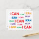 A Postcard with a Positive Behauptung " I CAN, I CAN" to ermuntert and convince the user that they can achieve their goals - or do anything they set their mind to. Aussagen can be used to reprogram one subbewusstous mind - but the key to success lies in regular and repeated use of the Bestätigung coupled with a determined, excited and joyful imaging of the desired result. The person needs to see themselves succeeding - and visualize a detailed, vivid "scene" of the chance when they reach their cherished goal. Such imaging makes a powerful druck on the subbewusstsein mind which will then automatically start to create circumsubstances to manifest the desired result. Send the postcard to a friend or pin it up where you can see it everyday.