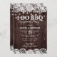 Rustic country I do barbecue string lights brown barn wood and vintage white lace engagement party invitation. Suitable for summer or autumn fall outdoor backyard engagement party or couple shower. Easy to personalize with your text!