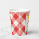 Entworfen, um mit VG Invites I Do GRILLEN Hochzeitskollektion zu koordinieren. Dieser Papierbecher ist mit rotem Gingham bedruckt und hat ein gelbes Sonnenblumendesign. Personalisieren Sie Ihre Hochzeitsdetails. Die gesamte Hochzeitskollektion für Ihre rustikalen Paare mit Dusche finden Sie unter www.zazzle.com/dotellabelle . Grillen