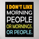 I Don't Like Morning People Sarcastic Funny Mornin Poster