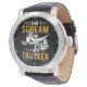 This wall clock features a humorous and assertive statement from a truck driver. Against a black background with a golden-yellow rim, it displays a white semi-truck graphic. The bold text "I DON'T SCREAM I'M A TRUCKER" is prominently displayed in a distressed golden-yellow and white font, making a witty declaration about the no-nonsense attitude often associated with professional drivers.