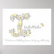 Hübsches I monogramm Art Name Poster perfekt für ein Mädchenschlafzimmer oder Spielzimmer in Grautönen, Weiß, Gelb, Rosa und lila. Personalisieren Sie sich mit dem eigenen Namen Ihres Kindes, beginnend mit mir, und nennen Sie Bedeutung für ein wirklich personalisiertes Geschenk für Ihr Kinderzimmer oder Kinderzimmer, dieses Beispiel ist für den Namen I Iuana Wind über einem Bubbling-Fluss, faszinierend mit Schönheit. Niedlicher Plakatdruck ideal für ein neues Baby-, Taufen- oder Babyduschgeschenk. © Einzigartiger Buchstabe I Monogramm Herz und Blume zeichnend und grafische Kunst Design von Sarah Trett. www.sarahtrett.com für www.mylittleeden.com