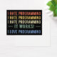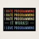 Fun Design, perfekt für jeden, der Programmierer, Techniker, Programmierer, Informatiker, IT-Student oder jemand, der Lieben zu programmieren ist! Ich hasste Programmieren. Es funktioniert! Ich Liebe Programming' lustiges Zitat für Programmierer, Technikfreunde, Programmierer und Entwickler. Haben Sie Liebe, in der Technik zu arbeiten und sind Teil der technischen Crew? Akzentuieren Sie Ihren Stil mit dieser coolen Kunst! Günstige Geschenke für einen IT-Uni-Schüler, Techniker, Techniker oder Informatik-Lehrer.