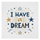 This bold inspirational design highlights the iconic phrase “I Have a Dream” using expressive typography and radiant starburst details. The contrast between deep blue lettering and warm golden textures creates a powerful visual balance that feels hopeful, celebratory, and timeless. Surrounded by stars, rays, and dynamic accents, the artwork symbolizes ambition, belief, and the courage to dream big. A striking piece for anyone drawn to motivation, vision, and meaningful messages.