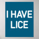 I Have Lice, Funny, Jokes, Sarcastic Poster