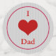 Packung von 60 kleinen, mittleren und großen Stücken Konfetti mit einem beidseitigen Bild der Phrase "I Heart Vater" in fett schwarzen Buchstaben gedruckt, wobei ein großes rotes Herz das Wort "Liebe" auf grauen Nadelstreifen ersetzt. Rote Grenze. Sehen Sie die gesamte Sammlung des Vatertags Confetti im DECOR | Abschnitt Confetti.