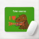 Diese Dinosaurierliebhaberentwurf mousepad Mäusematte hat ein Cartoonbraun, beängstigendes Tyrannosaurus Rex Dinosaurierbild. Sie isst das Wort "Dinosaurier" in "mir Liebedinosaurier" mit seinen langen, scharfen Zähnen. Die "Liebe" ist eine Herzform.