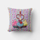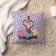 Schönes blaues, rosa und gelbes gestreiftes Throwkissen (hergestellt in den USA) mit hübschen rosa Sternen und i-Herz mit einem Bild von drei reizenden yummy kleinen Kuchen darunterliegend. Ein entzückendes cooles und trendy Geschenk für Frauen u. Mädchen.