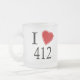 Liebe I die 412! Sind Sie von Pittsburgh, Pennsylvania? Tun Sie Liebe die 412? Oder haben Sie einen Freund oder ein Familienmitglied, das tut? Wenn ja dieses "ich Liebe" Tasse, die Liebe für Pittsburgh zeigt, bin genau das Geschenk, dass Sie suchen! Die Ausrüstungsbeschreibungen der Buchstabe "ich" in der schwarzen Beschriftung mit einem roten Herzen auf der Spitze und "dem 412" in der schwarzen Beschriftung auf der Unterseite.