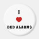 Einfach "Ich" mit einem roten Herz in der Mitte und "Bed Alarms" in schwarz am unteren Rand. Im traditionellen "I Liebe" Stil.