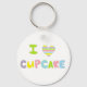 Ich Liebe Cupcake Schlüsselanhänger. Anpassbarer Schlüsselanhänger sagt, dass ich Liebe Cupcake mit bunten Buchstaben und ein niedliches Herz.
