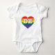 Dieser Baby-Ramper verfügt über ein Herz mit einem Regenbogendesign und den Buchstaben DE. Neben den Streifen, im Herzen, sind die Hauptstädte Buchstaben DE, die offizielle Abkürzung für den Staat von Delaware, in einem fett weißen Schriftart. Zeigen Sie Ihre wahren Farben, unterstützen Sie die Gleichheit der Ehen und feiern Sie Gay Pride.