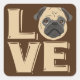 I Liebe Funny Mops Quadratischer Aufkleber