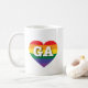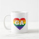 Diese Tasse zeichnet sich durch einen Regenbogenherz aus, überlagert durch die fett-weißen Hauptstädte Buchstaben GA, die offizielle Abkürzung für Georgia, den pfirsichfarbenen Staat. Zeigen Sie Ihre wahren Farben, unterstützen Sie die Gleichheit der Ehen und feiern Sie Gay Pride.