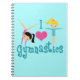 Ich Liebe Gymnastik. Ein hübsches Gymnastikgeschenk mit bezauberndem aquamarinem Text zwischen zwei niedlichen, schwindelnden kleinen Mädchen und einem schönen rosa Herz. Ein niedliches Gymnastikgeschenk für Kinder oder Damen. Ein brünett in einer Handablage und ein blondes Mädchen mit ausgestreckten Armen.