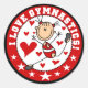 Ein Strichmännchen Girl Gymnast in einem roten Leotard mit vielen roten Herzen und Text, dass ich Liebe Gymnastik auf Gymnastik T - Shirt, Knöpfe, Hoodies, Tasse, Taschen, Karten, Knöpfe, Schlüsselanhänger, Keepsakes, und vieles mehr.