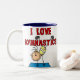 Ein Strichmännchenmädchen tut einen Handstand auf der Matte, die ihr Bodenprogramm übt und Text liest "mich Liebe-Gymnastik" auf Mädchen Gymnast T - Shirts, Tassen, Taschentaschen, mousepads, Aufklebern, Karten und anderen Mädchen Gymnastkleider- und -geschenkeinzelteilen.