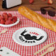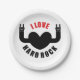 Hände aufgezogen und eine Botschaft, die sagt, ich Liebe harten Stein. Dieses Design wirkt auf diese Paper-Teller sehr effektiv