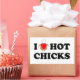 Ich Liebe heiße Küken. Eine doppelte Bedeutung, aber beide sind wahr. Ideal für einen weiblichen Mann, der auch ein saftig gebratenes Huhn sehr schätzt.