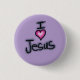 Ich Liebe Jesus ich Herzen Jesus lila Button. Lass ihnen wissen, wie du über Jesus denkst! Handgeschriebener schwarzer Text mit einem hellrosa Herz. Personalisieren Sie die Hintergrundfarbe mit dem Werkzeug Bearbeiten. Viel Spaß!