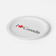 Ich Liebe Kanada Typografie mit roten Ahornblättern Kanada Tag patriotische moderne niedliche Party Papier Teller. Schwarzer Text mit rotem Ahornblatt anstelle von rotem Herz auf weißem Hintergrund.