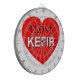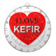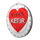Ich Liebe Kefir. Kefir ist ein natürliches probiotisches Getränk aus Milch. Rotes Herzbild mit Text.