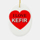 Ich Liebe Kefir. Kefir ist ein natürliches probiotisches Getränk aus Milch. Rotes Herzbild mit Text.