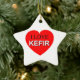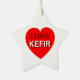 Ich Liebe Kefir. Kefir ist ein natürliches probiotisches Getränk aus Milch. Rotes Herzbild mit Text.