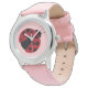 Kinderuhr aus Edelstahl mit rosa Lederarmband